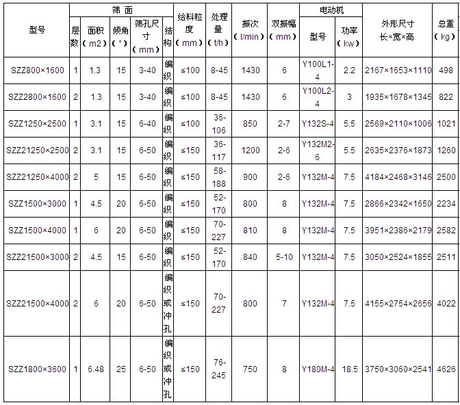 ——篩機分單層和雙層,除了SZZ1800×3600振動篩外都為吊式。——篩網結構有編織網和沖孔篩板。