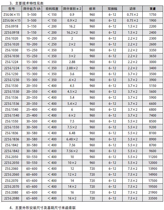 (1)敝開型(ZSG-□×□)為座式,無(wú)防塵蓋板,結(jié)構(gòu),用于大篩分能力、無(wú)粉塵污染的顆粒物料的篩分作業(yè)